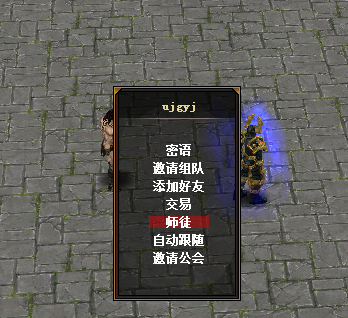 使用shift和鼠标左键对想要建立师徒关系的人物申请师徒关系